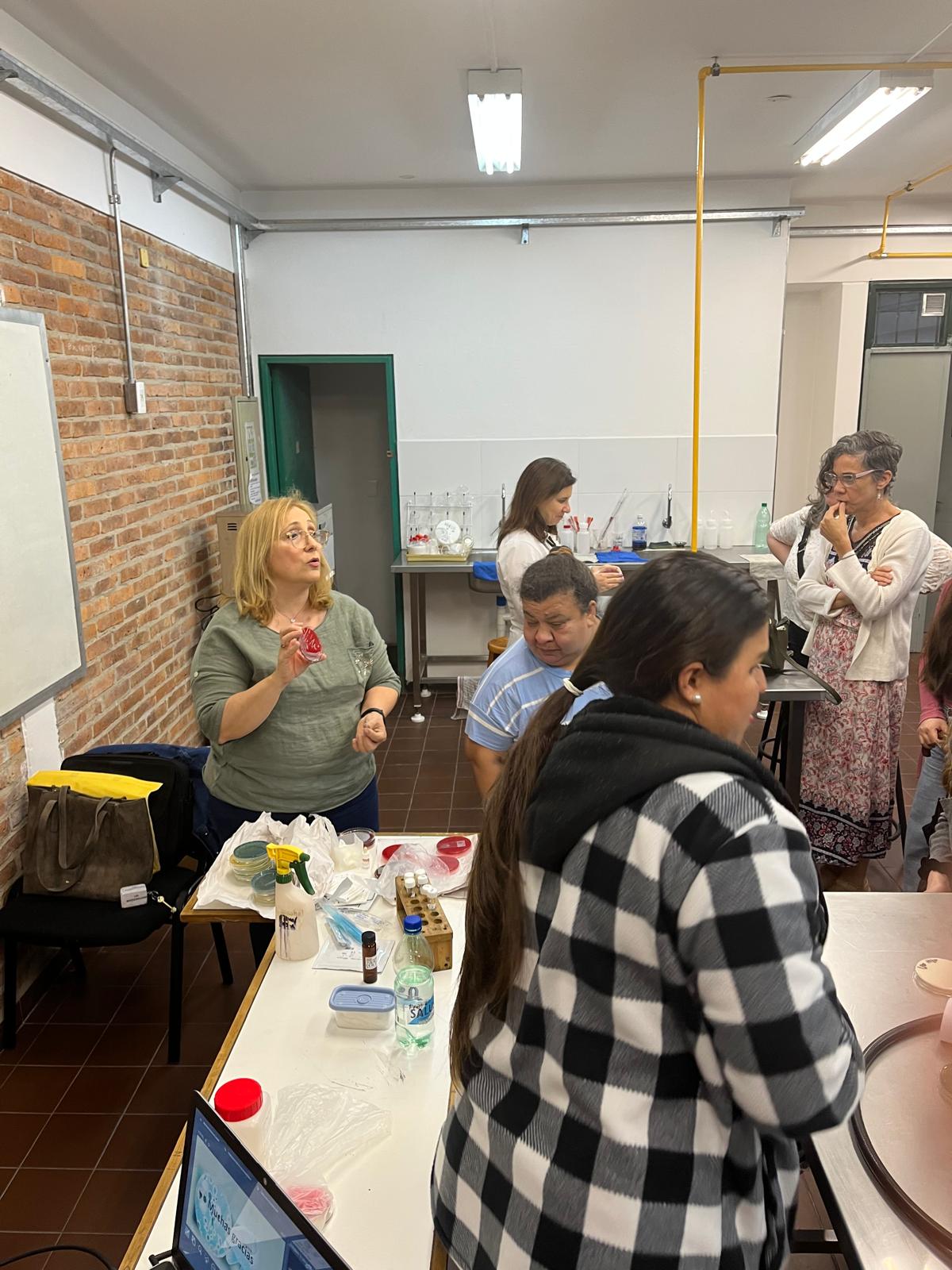 Una mirada al mundo microscópico: La jornada inició con un enfoque práctico a cargo de la Quim. Farm. y Bioquim. Clin. Patricia Echeverría, quien lideró el taller «Microorganismos: Presencia Invisible». Esta instancia permitió a los participantes comprender el impacto fundamental de la vida microscópica en nuestro entorno.